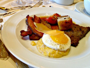 Although long a favorite in southeast Pennsylvania — and with strong Chester County roots — scrapple is becoming an artisan food as well, as evidenced by this Antelope and Goose Scrapple with Sunny Side Egg and Grits.