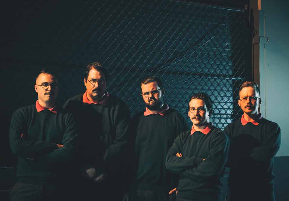 On the flip side, if you just saw a picture of Okilly Dokilly – five guys wearing sweaters over collared shirts and wire-rimmed spectacles…with four of the five sporting short hair parted on the side and small, neatly-trimmed mustaches – you might expect a Christian Rock vocal group.