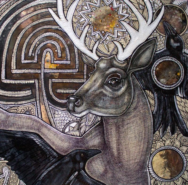 Mala Galleria opens a new show opening this First Friday with the paintings of Lynette Shelley, who paints very strong almost graphic depictions of animals and birds that resonate with mythic and spiritual undertones. Lynnette’s paintings bring to mind Celtic myth, with their measured design elements that enwrap a central animal figure. Well painted and delineated, her paintings are more than decorative and have a spirit and energy all their own. I have bought several of her paintings as gifts, and you might check out her latest works and see if they resonate with you as well! In the back gallery at Mala Galleria, you will see the works of several other fine local artists- there is always an artwork that appeals to someone’s heart at Mala Galleria! Venture across the street to check out Salt and Stone, one of my favorite art and locally made gifts store, as well as Metamorphosis Wellness Center that has super cool jewelry, artwork and ceramics with a healthy and happy new age vibe.
