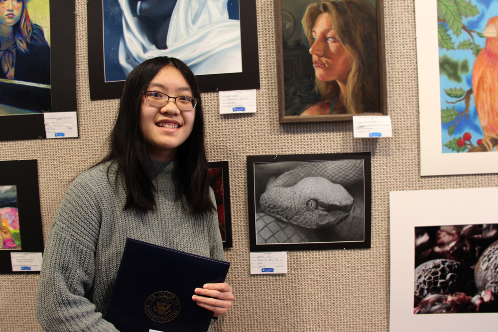 When asked how it feels to win first place and having her artwork displayed in the Capitol building for an entire year, Isabella Woo, a sophomore from Phoenixville Area High School said, “I’m overwhelmed. I was not expecting this at all, but it feels great.”