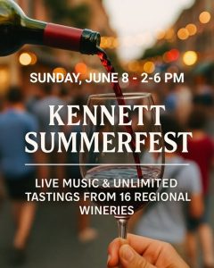 The Fourth Annual Kennett Summerfest, a wine and spirits festival, celebrates exceptional local wineries and distilleries and brings together wine, cheese, and live music in a sophisticated festival atmosphere.With its moderate climate and rolling hills, in addition to microclimates with good elevation, soil composition and drainage, Pennsylvania continues to come into its own as a serious place for refined and elegant wines.