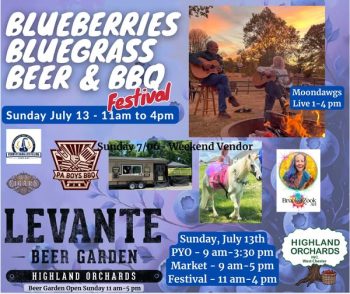 On July 13, Highland Orchards (1000 Marshallton-Thorndale Road, West Chester, www.highlandorchards.net) will host its annual “Blueberries, Bluegrass, Beers & BBQ Festival.”This family-friendly event, which starts at 11a.m., will feature food trucks, beer, wine & spirits, kids train, goat feeding, farm tours (weather permitting), and berry picking.