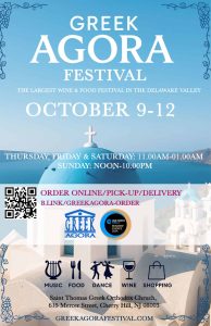 Now through October 12, St. Thomas Greek Orthodox Church (615 Mercer Street, Cherry Hill, New Jersey, greekagorafestival.com) will present “Agora 2025” – an event that is billed as “The Largest Wine & Food Festival in the Delaware Valley.”Since 1974, the Agora has been the signature celebration of the Saint Thomas community. Every October, parishioners welcome thousands of guests to share in a weekend that reflects the Greek way of life.
