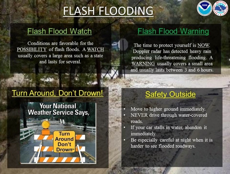 More information about flash flooding is available at http://www.ready.gov/floods or http://www.nws.noaa.gov/os/water/tadd/. In addition, county residents are invited to comment about their flash-flooding experience on the DES Facebook Page at https://upload.facebook.com/CCDES/photos/a.10150383502410534.614827.182337115533/10153893683755534/?type=1&stream_ref=10.